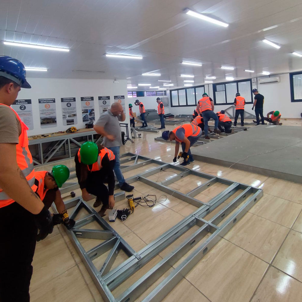 CRONOGRAMA TREINAMENTO CONSTRUINDO EM LIGHT STEEL FRAMING Terça-feira: Abertura do curso às 8:30, almoço às 12:00, retorno as 13:30 e encerramento às 18:00 Quarta-feira: Início às 08:30, almoço às 12:00, retorno as 13:30 e encerramento às 18:00 Quinta-feira: Início às 08:30, almoço às 12:00, retorno as 13:30 e encerramento às 18:00 Sexta-feira: Início às 08:30 e encerramento às 13:00 O Curso Steel Frame tem duração de 4 dias. Sendo Terça-Feira das 8:30 às18h; Quarta e Quinta-Feira das 08h30 às 18h e na Sexta- Feira das 08h30 às 13h.O curso é certificado pela Espaço Smart e o primeiro e único curso Steel Frame reconhecido pelo SENAI, com carga horária de 30 horas. Conceitos gerais do sistema steel frame: Aulas teóricas com ênfase ao aço (estrutural), revestimentos e boas práticas de execução Leitura do Caderno de Obras / Montagem: Para realização da montagem de estruturas, deve-se entender como ler o caderno de Montagem de Painéis. Para alocação dos painéis, deve-se entender como ler o caderno de obras. Isso será ensinado em nosso momento prático no treinamento. Montagem de Painéis: Através do caderno de montagem de painéis, será ensinado como identificar os perfis em seus respectivos fardos, realizando a montagem de cada painel de uma determinada obra. Alocação de Painéis: Com a montagem dos painéis feitas, Faremos a alocação dos painéis através do caderno de obra. Aplicação de revestimentos: Serão aplicados os seguintes revestimentos: OSB Membrana Hidrófuga Placa cimentícia Tratamento de juntas/Basecoat Smart Side Panel H Smart Side LAP Siding Vinílico EIFS Instalação Telhado Shingle: A Telha Shingle é mais que uma telha. É um sistema de cobertura que proporciona beleza, estanquidade, leveza e durabilidade ao telhado. Será ensinado como fazer a aplicação dela.