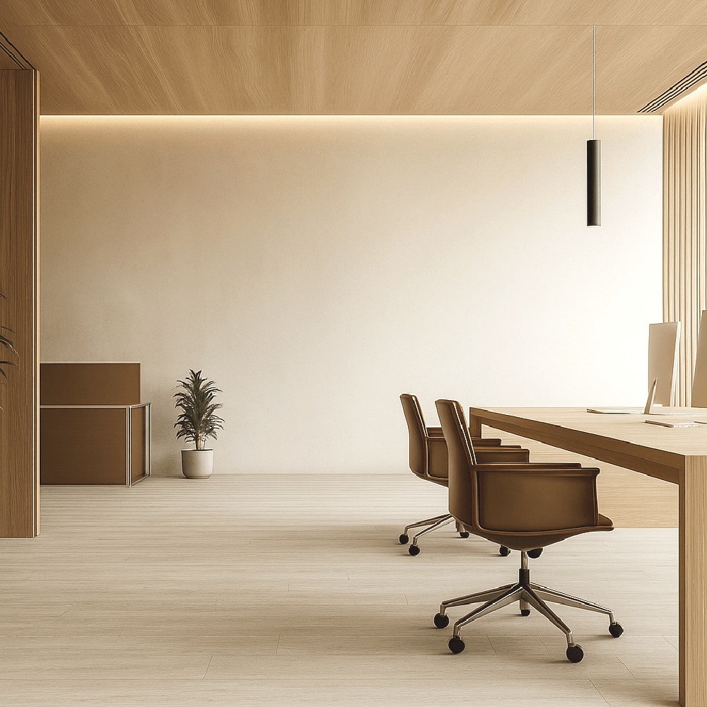 Com acabamento em madeira clara realista, no tom exclusivo Amêndoa Champagne, este revestimento cria um efeito visual elegante e moderno, valorizando qualquer espaço comercial.